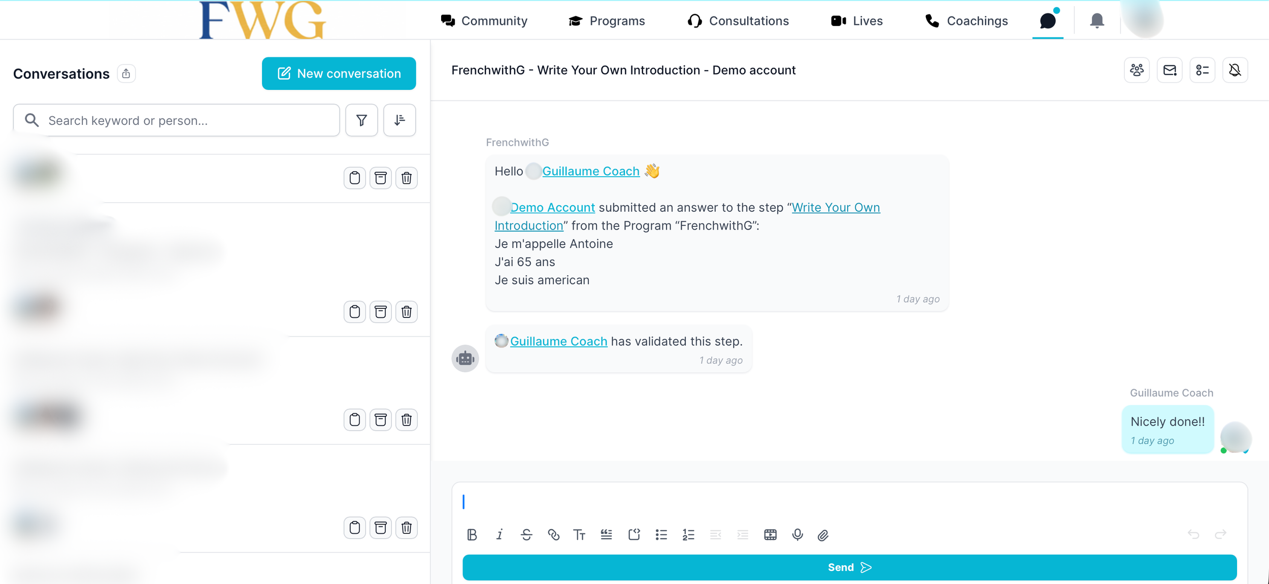 Whether it’s via Direct Messages, in the private spaces, or through questions asked in the lessons, you can always get a hold on me